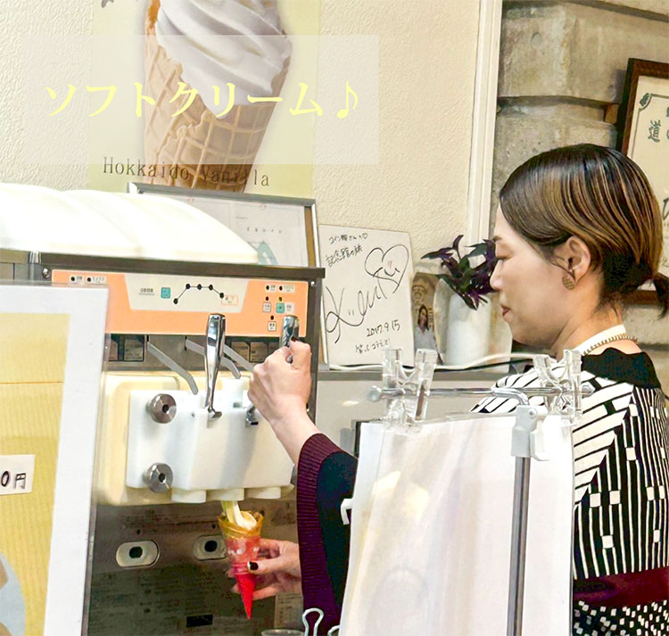 人気の「砂絵もなか」と季節限定のソフトクリーム♪